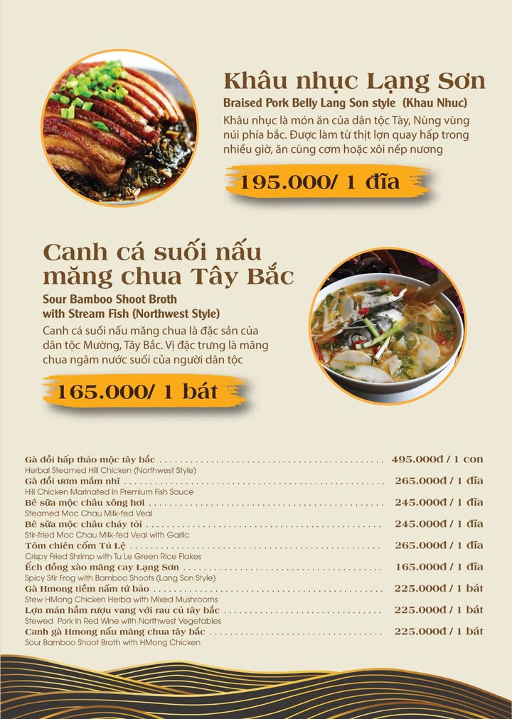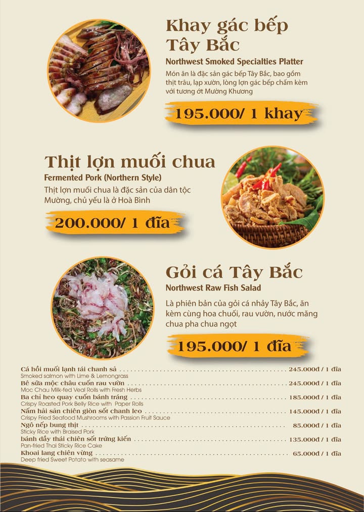 Mang đến hương vị núi rừng Tây Bắc giữa lòng thành phố với những món ăn đậm đà, chuẩn vị truyền thống. Không gian ấm cúng, mộc mạc theo phong cách nhà sàn, thích hợp cho họp mặt gia đình và bạn bè.