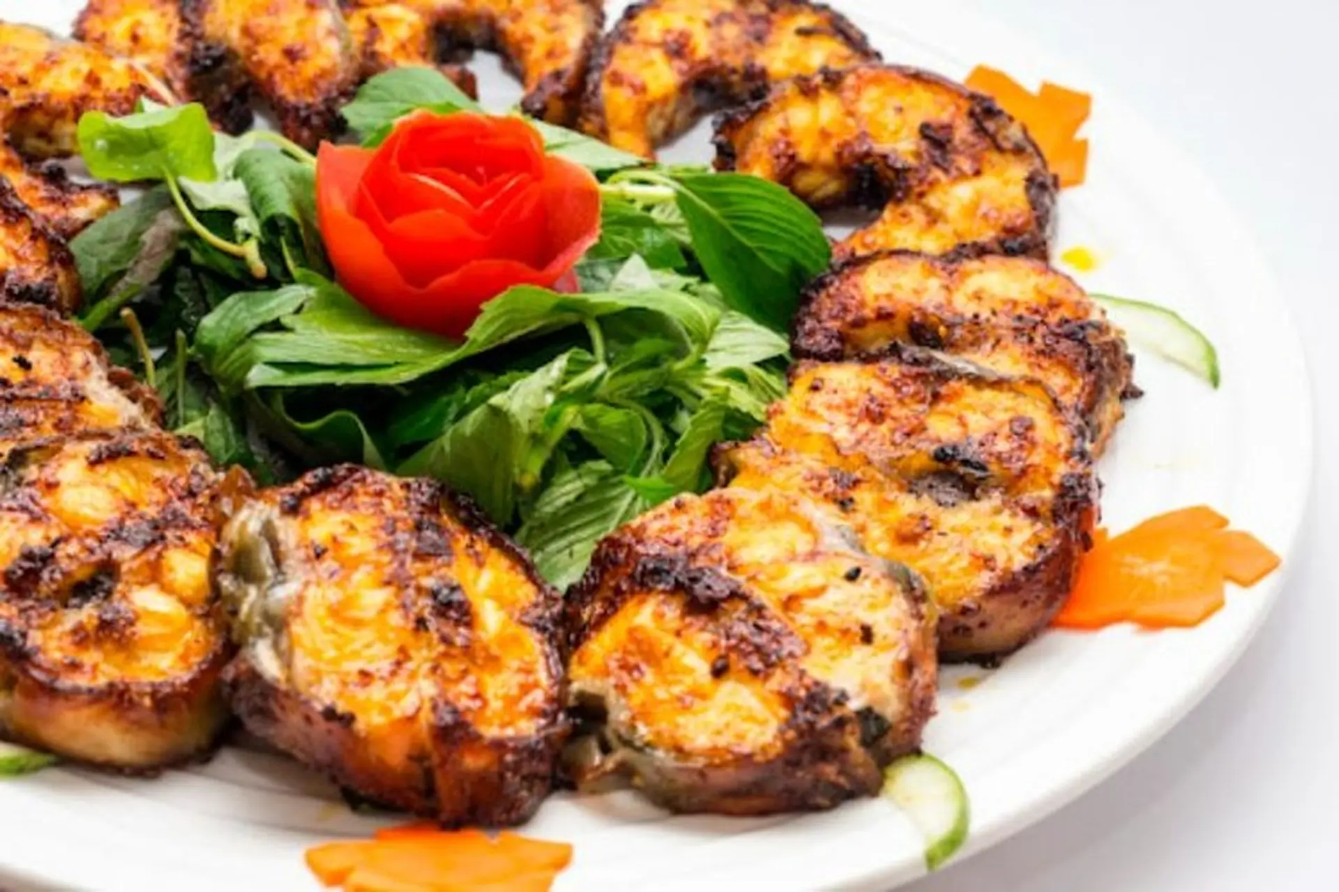 Cá tầm nướng mắm ớt là món nướng đậm đà, cuốn hút từ mùi thơm đến hương vị. Cá tầm tươi được tẩm ướp mắm ngon, ớt và tỏi theo tỉ lệ vừa phải, sau đó nướng trên lửa để lớp ngoài xém nhẹ, bên trong giữ trọn độ dai béo tự nhiên. Mắm thấm sâu từng thớ cá, vị cay nồng hòa cùng vị mặn ngọt đặc trưng, tạo nên món ăn mạnh vị nhưng không gắt, ăn nóng càng dậy mùi và rất bắt vị.
