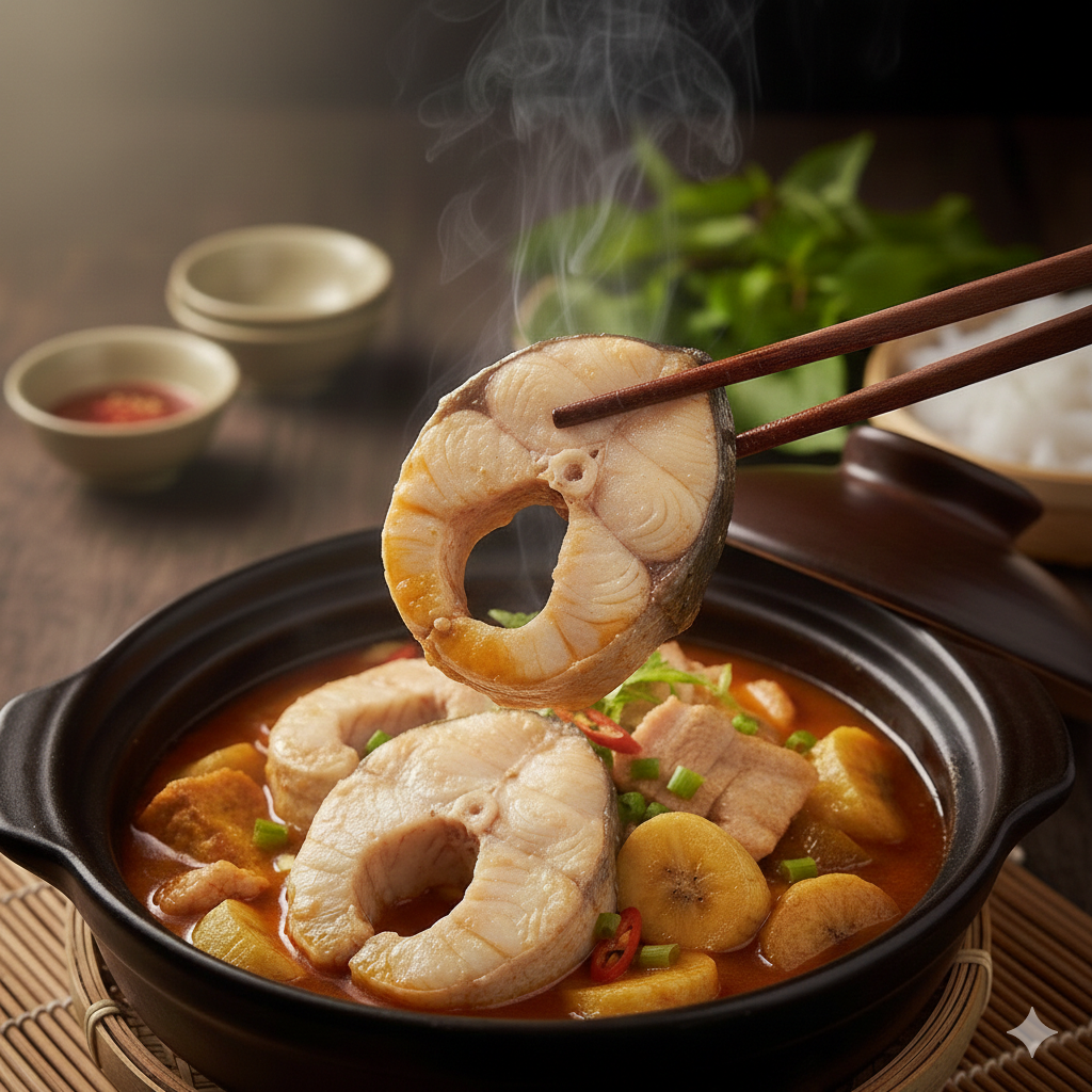 Món Cá Tầm Om Chuối Đậu